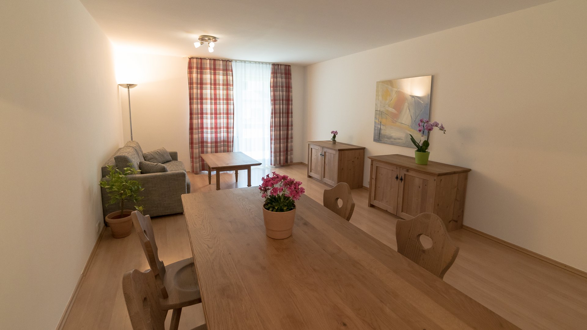 Like our hotel rooms, the apartments are also comfortably furnished, are bright and have high-quality wooden furniture in warm natural tones. Some of the one and two-room apartments are located directly in the hotel. Another seven are accommodated in our apartment building adjacent to the hotel.